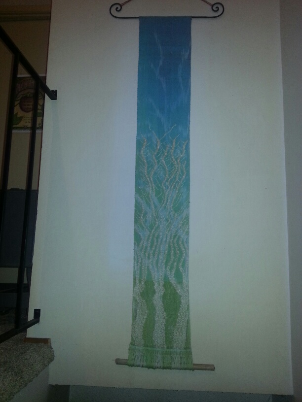 Gallery/Recyled Materials Seahorse/Recycled Materials Weaving/Birch Trees /12″ x 60″ Made of natural linen fibers